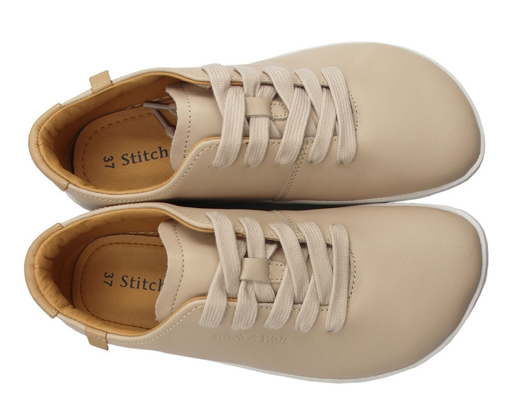 Stitch & Walk to minimalistyczne buty barefoot dla dorosłych, stworzone z myślą o naturalnym ruchu i codziennym komforcie. Jasny, kremowy kolor w połączeniu z prostą, ponadczasową formą sprawia, że model doskonale wpisuje się w styl casual, miejski i smart casual.