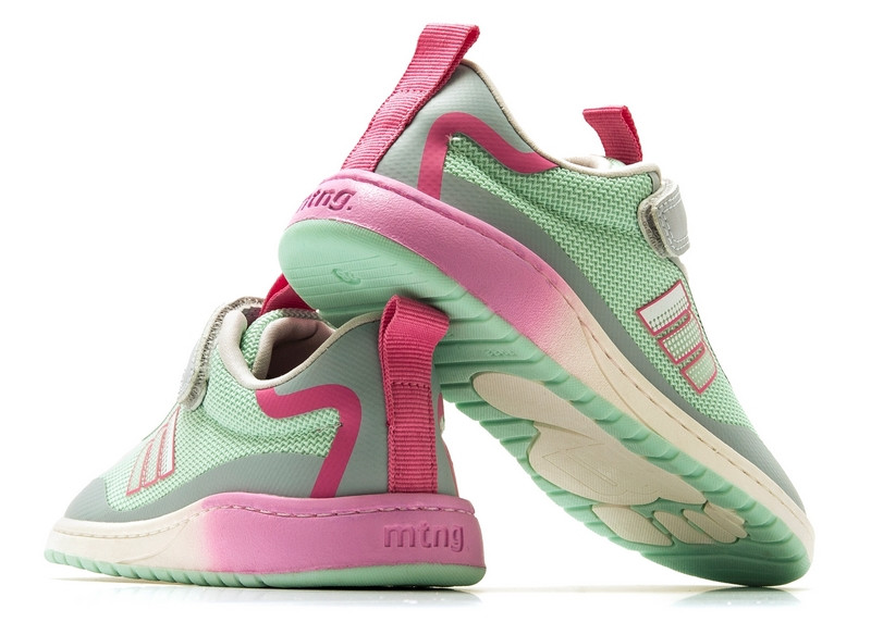 Model MTNG Free 49045-C59436 to nowoczesne buty barefoot stworzone z myślą o aktywnych dzieciach. Zaprojektowane w sportowym stylu, w mietowym kolorze z akcentami różu i szrości, łączą wygodę, funkcjonalność i modny wygląd. Dzięki lekkiej konstrukcji oraz elastycznej podeszwie buty zapewniają naturalny ruch stopy, a szeroki przód pozwala palcom swobodnie pracować podczas chodzenia i biegania.