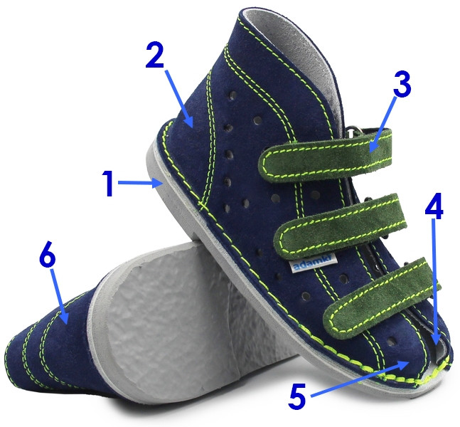 - Podeszwa: elastyczna, antypoślizgowa, z obcasem Thomasa
