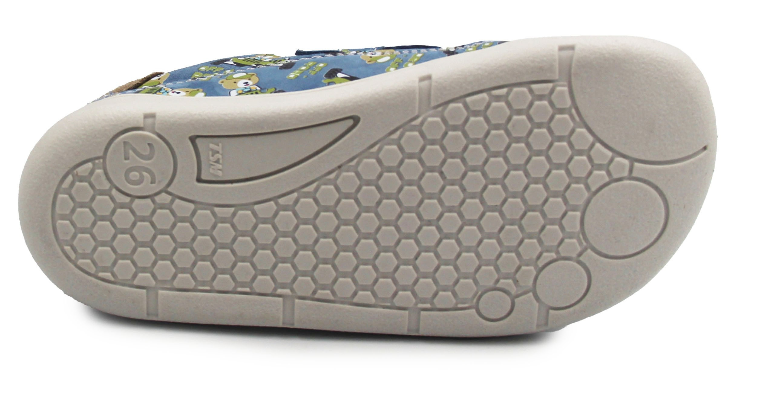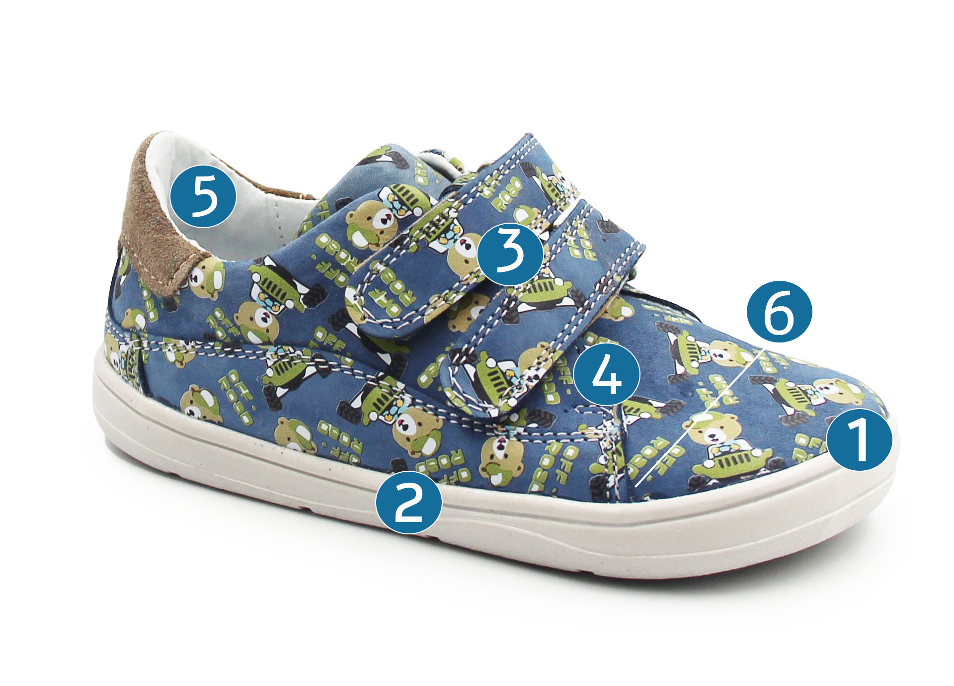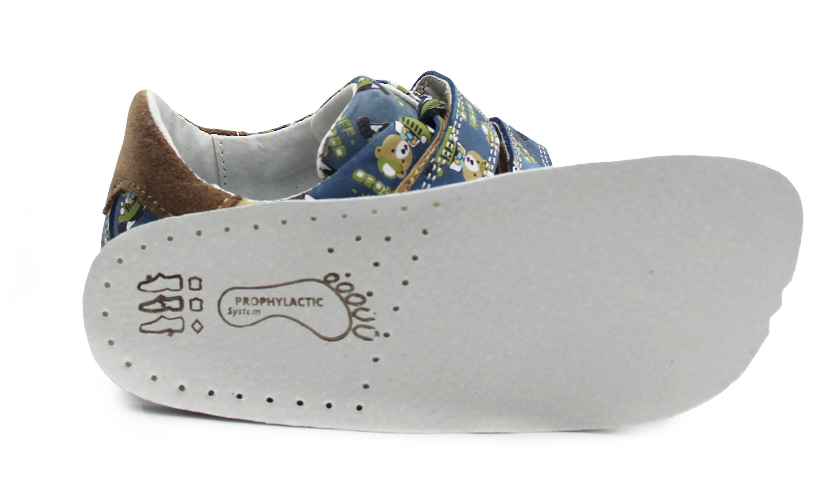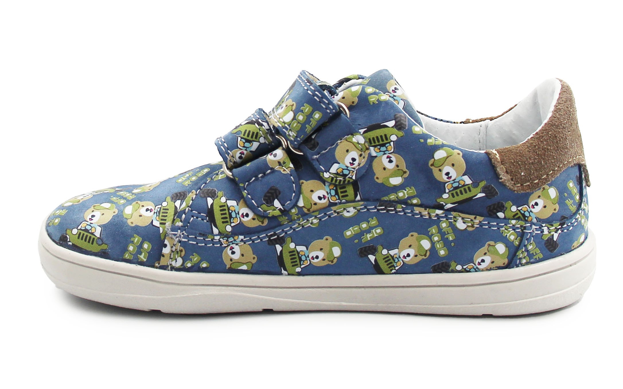 Buty wiosenne dla dziecka, zapinane za pomocą dwóch praktycznych rzepów. Wykonane ze skóry oraz miękiego weluru. Wkładka jest wyjmowana i dwuczęściowa, dzięki czemu amortyzuje wstrząsy od podłoża oraz poprawia komfort podczas chodzenia. Czubki półbutów są szersze, tak by palce mogły swobodnie się poruszać.