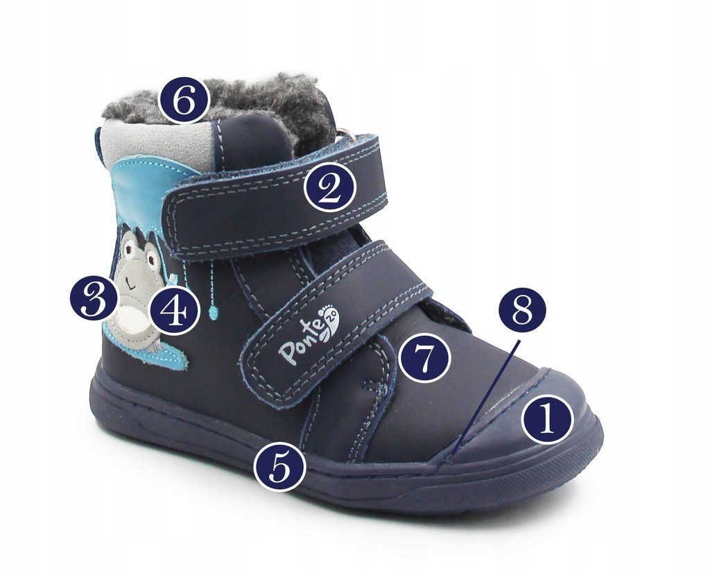 Dziecięce buty zimowe ocieplane futerkiem syntetycznym, które ogrzewa stopy podczas chłodniejszych temperatur. Łączą one w sobie cechy takie jak elastyczność, niska waga oraz anatomiczny kształt, jednocześnie gwarantując optymalny komfort cieplny w chłodne dni. Ich innowacyjna budowa zapewnia swobodę i skuteczną ochronę nawet w wymagających warunkach zimowych. Podeszwa daje stopom pełną swobodę ruchów podczas chodzenia, czy też zginania. Szerszy kształt podeszwy zapewnia palcom więcej miejsca.
