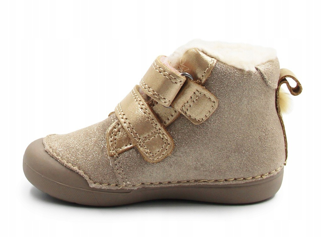 Dziewczęce buty zimowe ocieplane futerkiem syntetycznym, które ogrzewa stopy podczas chłodniejszych temperatur. Łączą one w sobie cechy takie jak elastyczność, niska waga oraz anatomiczny kształt, jednocześnie gwarantując optymalny komfort cieplny w chłodne dni. Ich innowacyjna budowa zapewnia swobodę i skuteczną ochronę nawet w wymagających warunkach zimowych. Podeszwa daje stopom pełną swobodę ruchów podczas chodzenia, czy też zginania. Szerszy kształt podeszwy zapewnia palcom więcej miejsca.
