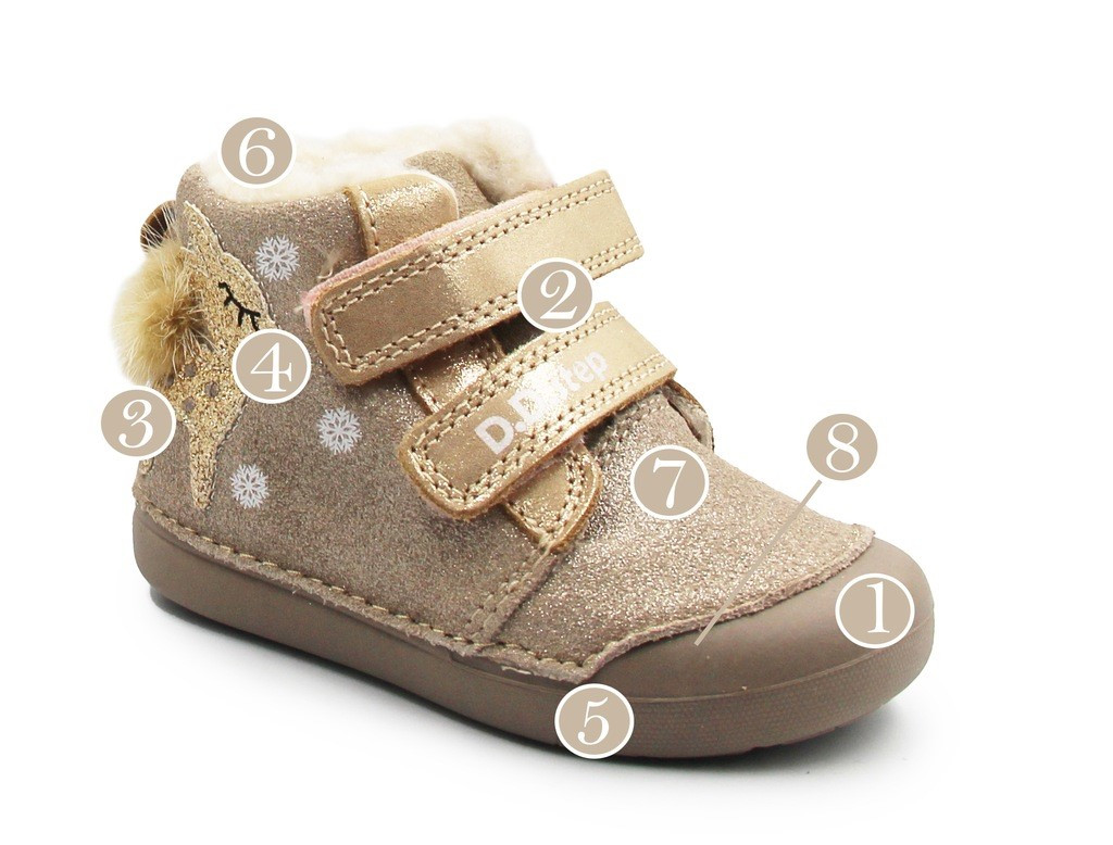 Dziewczęce buty zimowe ocieplane futerkiem syntetycznym, które ogrzewa stopy podczas chłodniejszych temperatur. Łączą one w sobie cechy takie jak elastyczność, niska waga oraz anatomiczny kształt, jednocześnie gwarantując optymalny komfort cieplny w chłodne dni. Ich innowacyjna budowa zapewnia swobodę i skuteczną ochronę nawet w wymagających warunkach zimowych. Podeszwa daje stopom pełną swobodę ruchów podczas chodzenia, czy też zginania. Szerszy kształt podeszwy zapewnia palcom więcej miejsca.