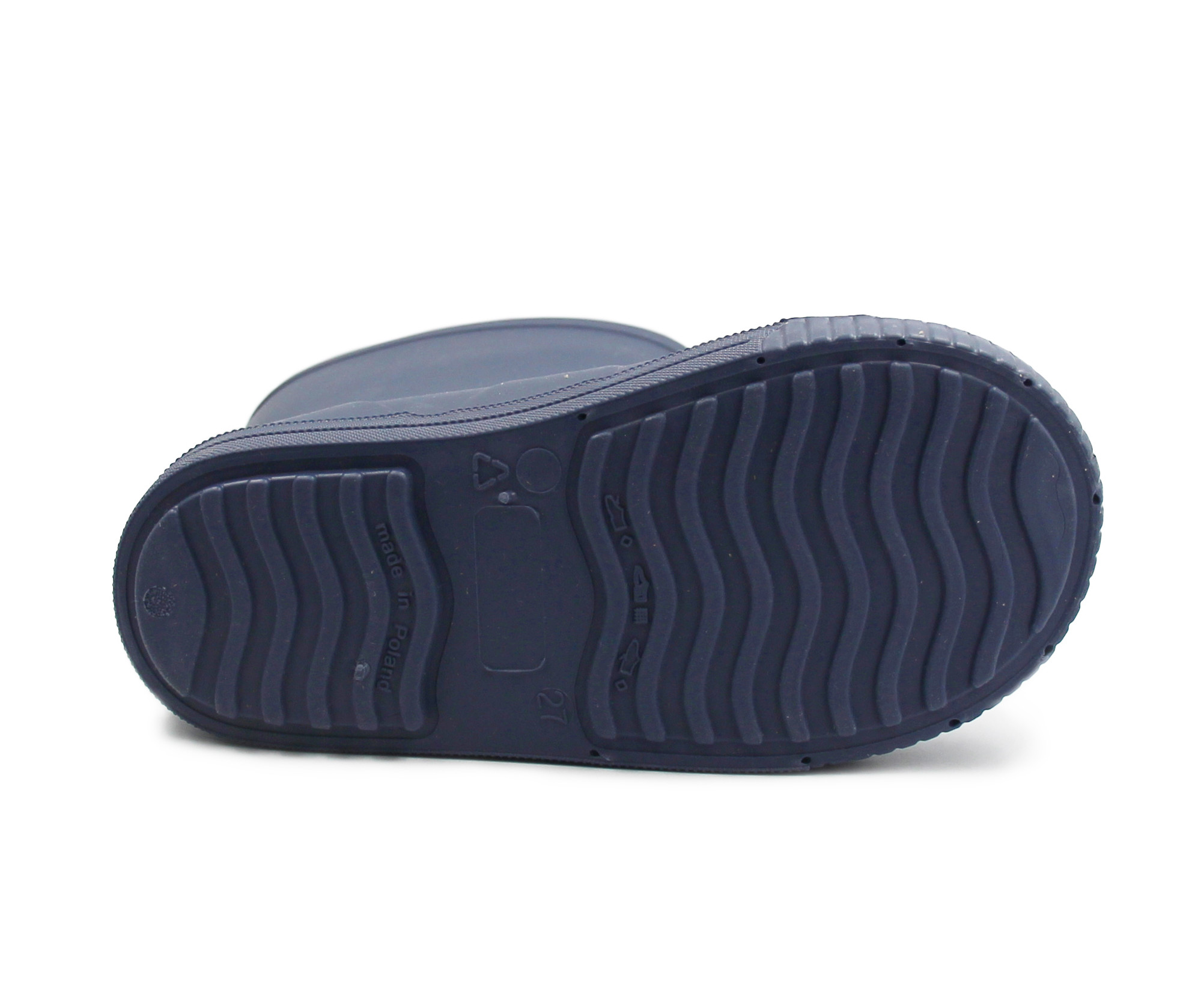 Dziecięce kalosze wykonane z elastycznego oraz odpornego na działanie czynników atmosferycznych tworzywa SEBS. Dzięki szerszym czubkom, palce dziecka mają dużą swobodę poruszania. Odblask umieszczony w okolicy pięty ulepsza widoczność. Wkładka jest wyjmowana, wykonana z miękkiego materiału.