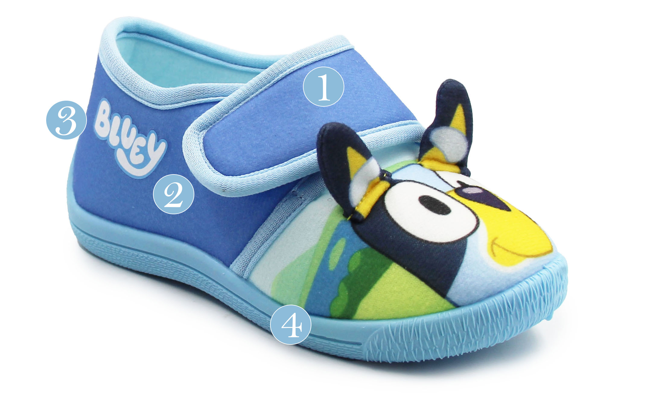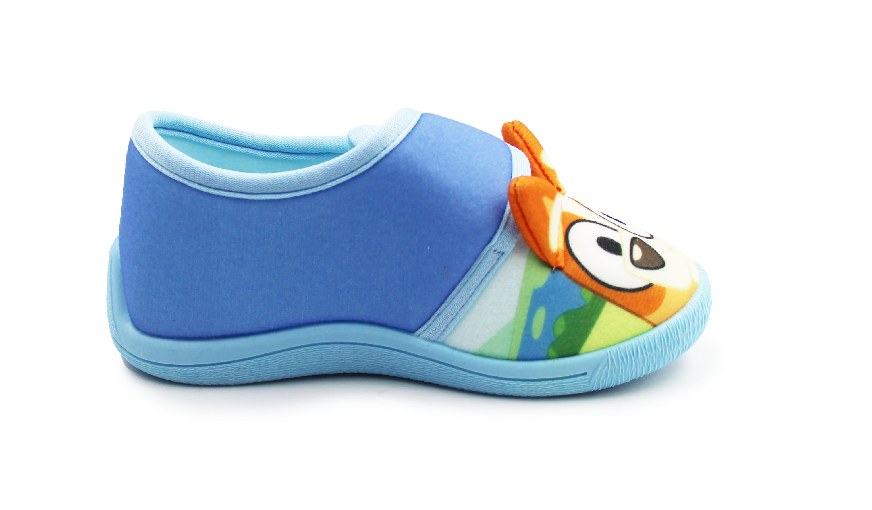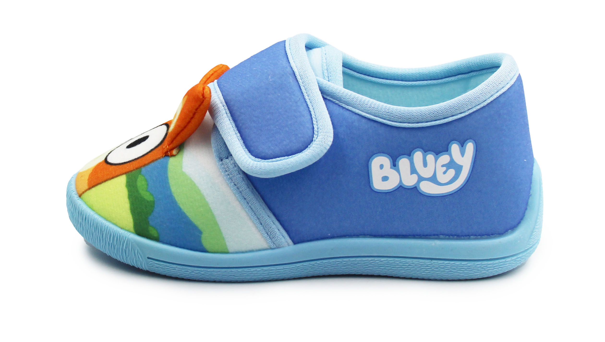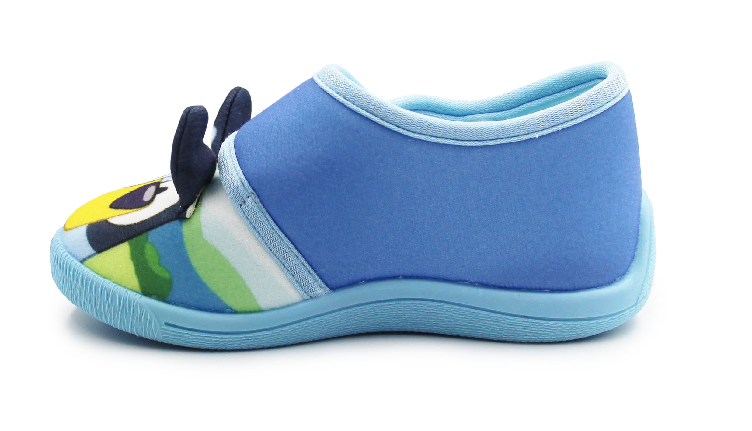 Dziecięce kapcie do szkoły i przedszkola, wykonane z miękkich tkanin. Wyróżniają się modnym motywem głównych bohaterów bajki Bluey. Zapinane za pomocą praktycznego rzepu. Podeszwa jest elastyczna, pozwala stopie poruszać się swobodnie podczas zabaw.