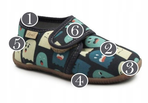 6. Zapięcie na rzep, umożliwia dopasowanie kapci do stopy dziecka.