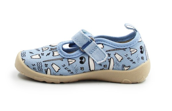 Dziecięce buty tekstylne w kolorystyce niebieskiej. To obuwie zarówno na dwór jak i jako obuwie zmienne do szkoły czy przedszkola. Regulowane za pomocą dwóch rzepów, które są szybkie, łatwe oraz praktyczne w użyciu. Wkładka delikatnie podpiera łuk stopy. Posiadają podeszwę Barfeoot, która charakteryzuje się wysoką elastycznością.