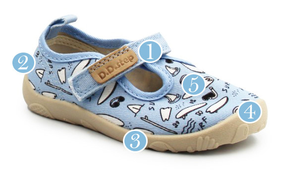 Najważniejsze jest to, żeby dziecko mogło swobodnie ruszać palcami, a but nie krępował ruchu. Takie obuwie pomaga uczyć się chodzenia bez ograniczeń.