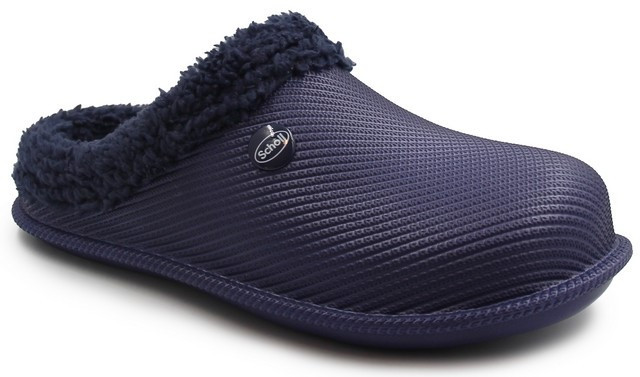 Futrzane kapcie damskie na zimę Scholl Maddy Double Med mf309081048 Navy Blue