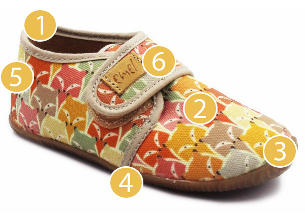 6. Zapięcie na rzep, umożliwia dopasowanie kapci do stopy dziecka.
