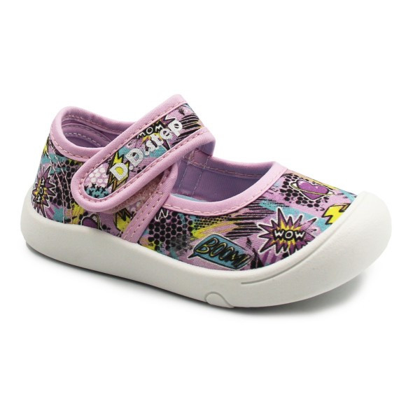Miękkie kapcie dziewczęce wykonane w kolorystyce różowej. Wyprodukowane są z miękkich materiałów przy użyciu technologii Soft Shock oraz Fit Zone. Zapiętek jest miękki oraz lekko wzmocniony. Podeszwa ma za zadanie amortyzować wstrząsy. Zapięcie na rzep umożliwia dopasowanie do szerokości stopy dziecka. Szersze czubki pozwalają palcom na swobodne poruszanie w obuwiu.