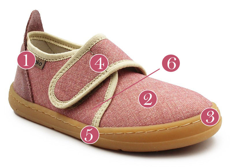 Elastyczne kapcie dziecięce wykonane z naturalnej bawełny, pianki ze skórzanym wnętrzem. Posiadają lekko usztywniony zapiętek, który ma za zadanie stabilizować piętę podczas chodzenia. Podeszwa jest bardzo elastyczna i nie ogranicza ruchomości stopy podczas zabaw.