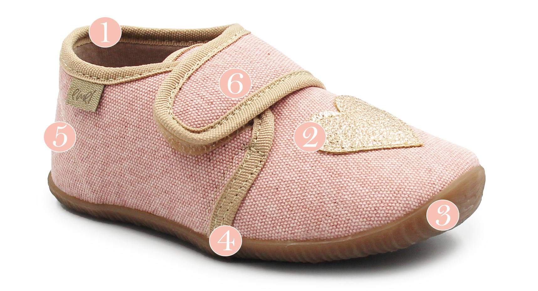 6. Zapięcie na rzep, umożliwia dopasowanie kapci do  stopy dziecka.