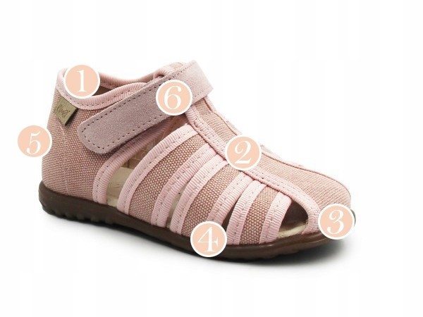 6. Zapięcie na rzep, umożliwia dopasowanie kapci do stopy dziecka.