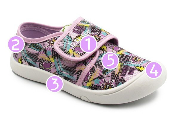 Miękkie kapcie dziewczęce wykonane w kolorystyce różowej. Wyprodukowane są z miękkich materiałów przy użyciu technologii Soft Shock oraz Fit Zone. Zapiętek jest miękki oraz lekko wzmocniony. Podeszwa ma za zadanie amortyzować wstrząsy. Zapięcie na rzep umożliwia dopasowanie do szerokości stopy dziecka. Szersze czubki pozwalają palcom na swobodne poruszanie w obuwiu.