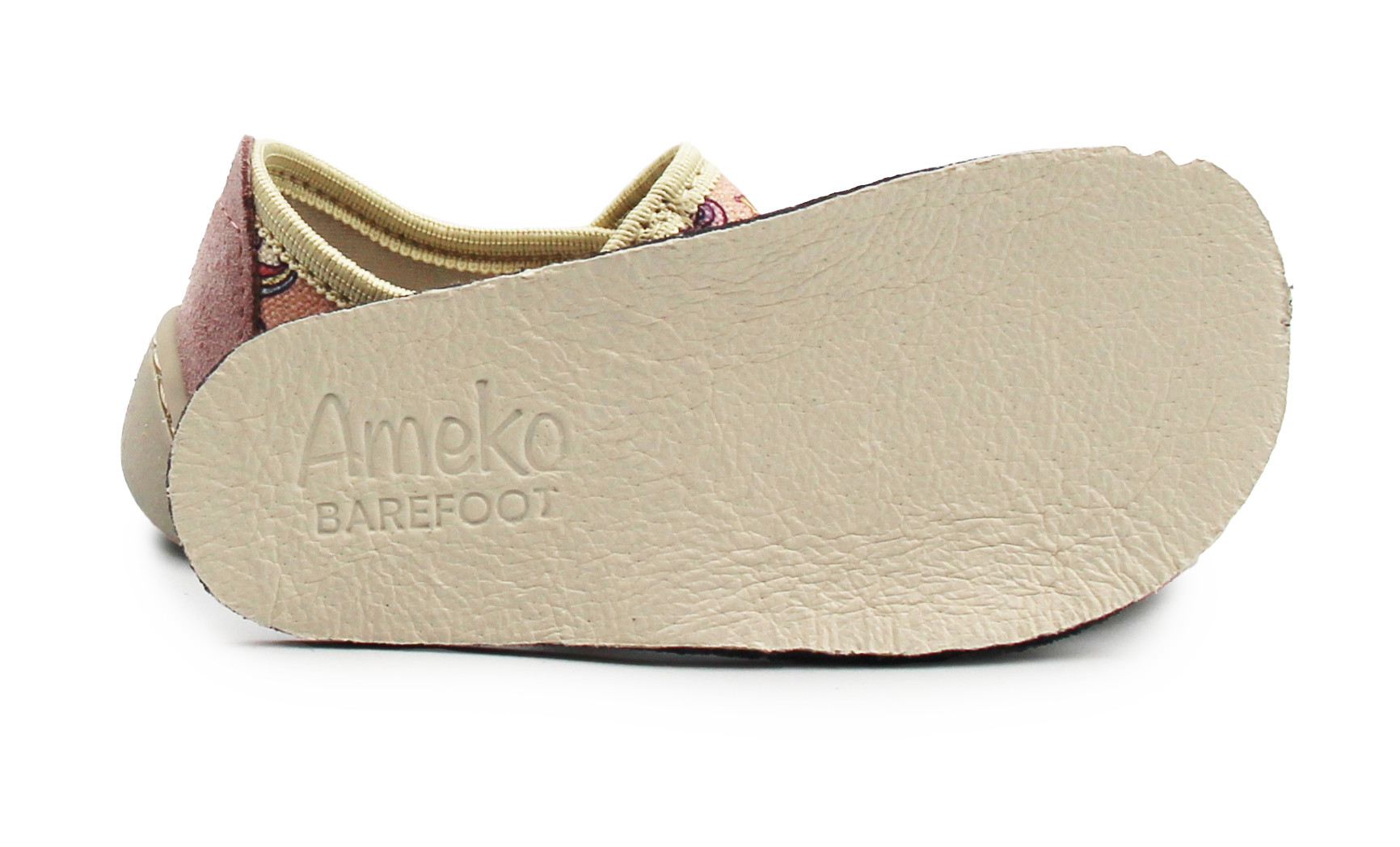Elastyczne kapcie dziecięce wykonane z naturalnej bawełny, pianki ze skórzanym wnętrzem. Posiadają lekko usztywniony zapiętek, który ma za zadanie stabilizować piętę podczas chodzenia. Podeszwa jest bardzo elastyczna i nie ogranicza ruchomości stopy podczas zabaw.