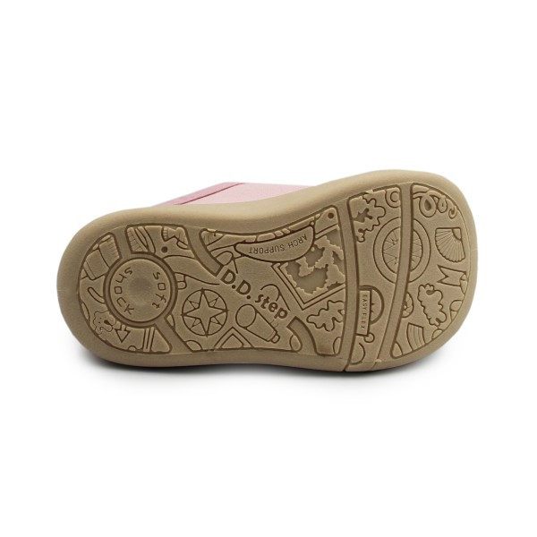 Miękkie kapcie dziewczęce wykonane w kolorystyce różowej. Wyprodukowane są z miękkich materiałów przy użyciu technologii Soft Shock oraz Fit Zone. Zapiętek jest miękki oraz lekko wzmocniony. Podeszwa ma za zadanie amortyzować wstrząsy. Zapięcie na rzep umożliwia dopasowanie do szerokości stopy dziecka. Szersze czubki pozwalają palcom na swobodne poruszanie w obuwiu.
