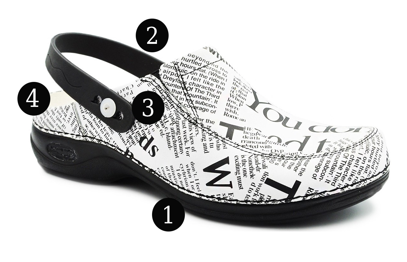 1. Podeszwa wykonana z wysokogatunkowego tworzywa, amortyzująca wstrząsy.