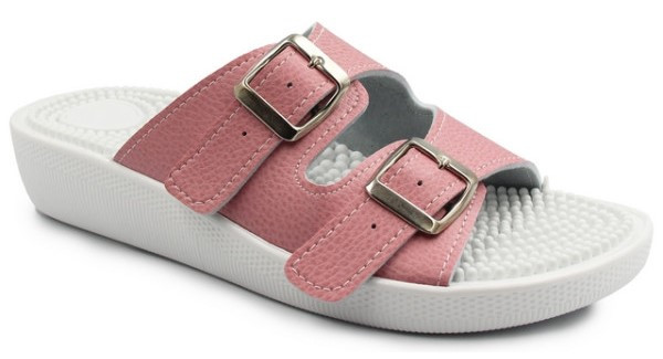 Klapki wyposażone są w kolce, które stymulują punkty akupresury w stopach.