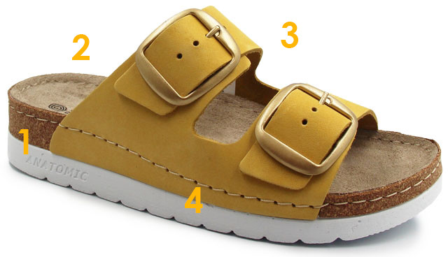 Wkładka ma anatomiczny kształt co zapewnia dobrą amortyzację wstrząsów, utrzymuje stopę we właściwej pozycji i równomiernie rozkłada ciężar ciała; zewnętrzna warstwa to naturalna skóra zamszowa stwarza to optymalny mikroklimat dla stopy.