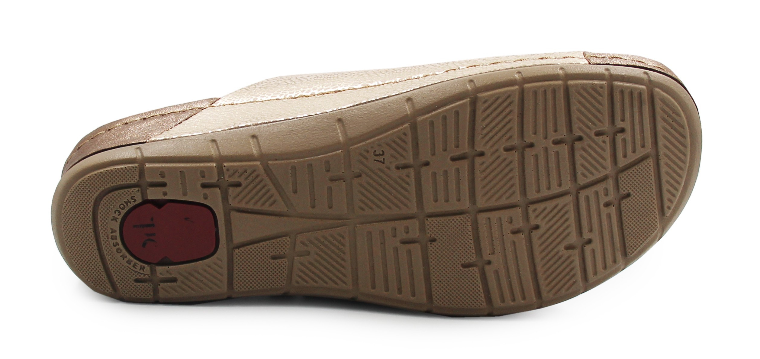 - Łagodne dla Halluksów - streczowe, rozciągliwe elementy buta, odpowiednia tęgość i łagodne materiały takie jak miękka skóra pomagają redukować ból i niewygodę towarzyszącą halluksom.