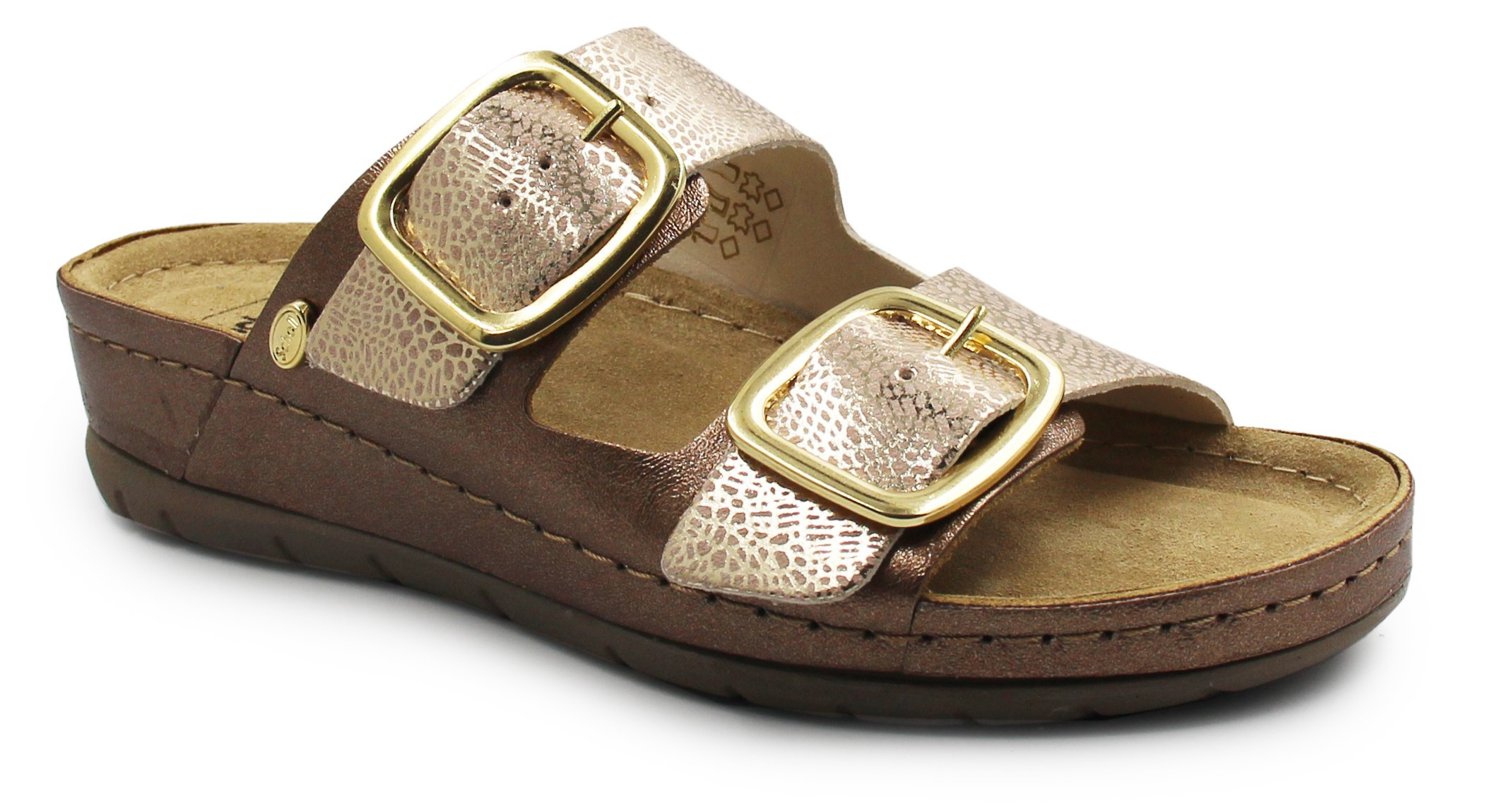Złote klapki dla kobiet do pracy na lato Dr Brinkmann 700904-82