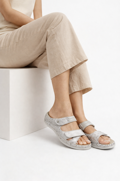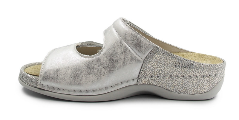 Dzięki dwóm regulowanym zapięciom na rzep - nad podbiciem oraz w przedniej części stopy - klapki Berkemann Janna doskonale dopasowują się do indywidualnego kształtu stopy. To szczególnie ważne dla osób poszukujących klapek na szeroką stopę, butów o większej tęgości lub wygodnych laczków z regulacją.