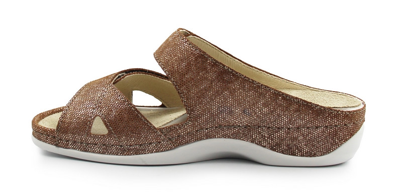 Dzięki dwóm regulowanym zapięciom na rzep - nad podbiciem oraz w przedniej części stopy - klapki Felia doskonale dopasowują się do indywidualnego kształtu stopy. To szczególnie ważne dla osób poszukujących klapek na szeroką stopę, butów o większej tęgości lub wygodnych laczków z regulacją.