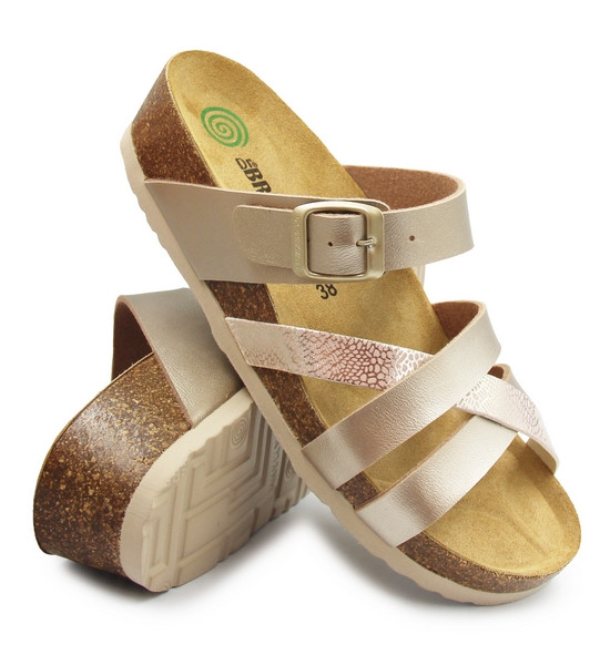 Złote klapki dla kobiet do pracy na lato Dr Brinkmann 700904-82
