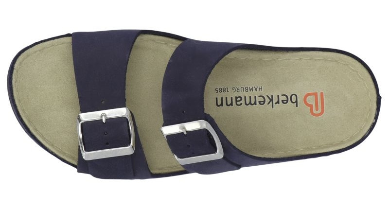 Berkemann Verica 01914-320 to wygodne damskie klapki wykonane z wysokiej jakości skóry naturalnej. Model wyróżnia się klasycznym wyglądem z dwoma regulowanymi paskami oraz metalowymi klamrami, które nadają obuwiu nowoczesny charakter.