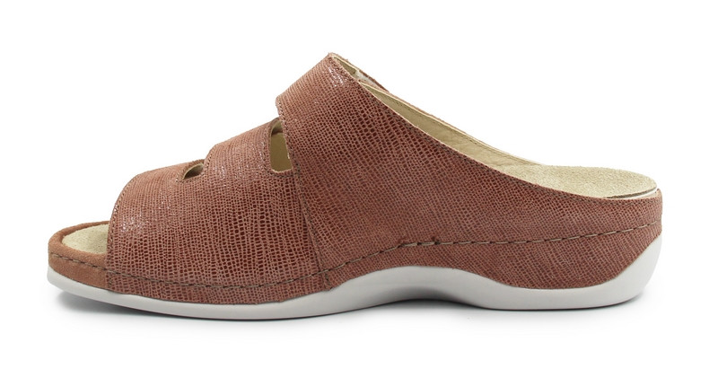 Klapki zostały wykonane z wysokiej jakości skóry naturalnej. Trzy szerokie paski zapinane na rzep pozwalają precyzyjnie dopasować obuwie do kształtu stopy, co zwiększa komfort noszenia przez cały dzień - zarówno w pracy, jak i podczas spacerów czy domowego użytkowania.