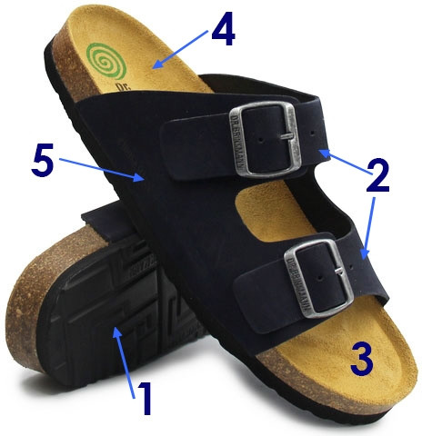 1. Wkładka wykonana ze skóry naturalnej, dzięki czemu skóra się nie poci a buty nadają się do całodziennego stania lub chodzenia np. w pracy czy na wakacjach.