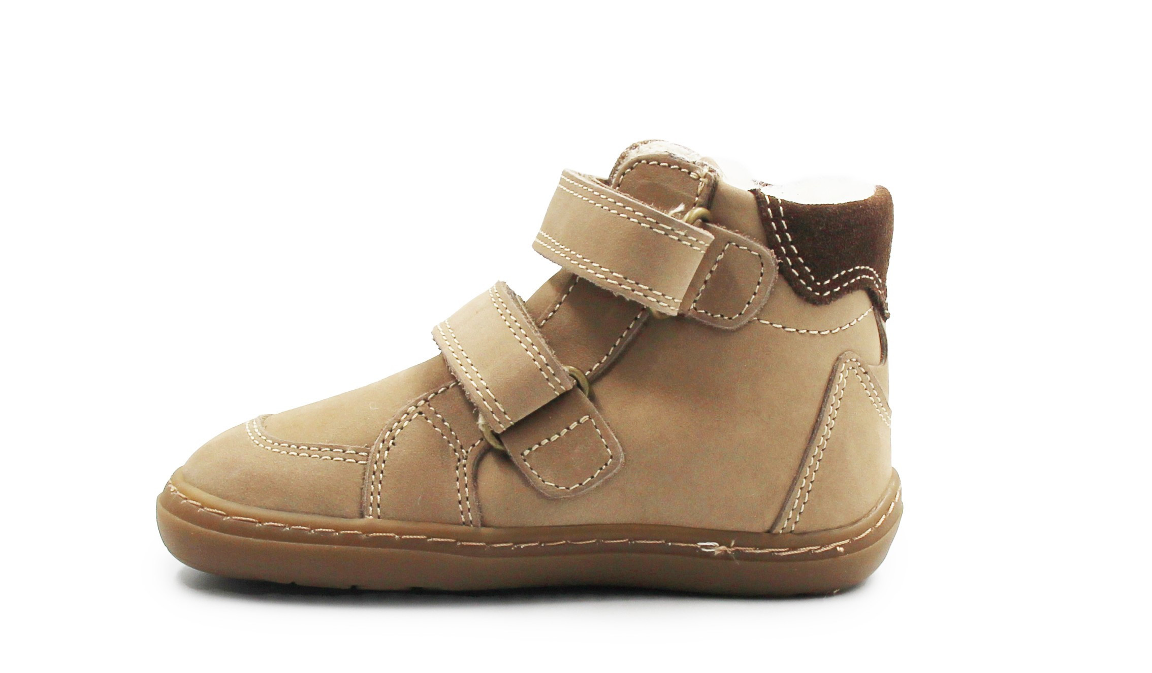 Dziecięce buty zapinane za pomocą praktycznych rzepów, które umożliwiają dopasowanie do szerokości stopy dziecka. Podeszwa nie ogranicza ruchomości stopy, dzięki temu, że jest elastyczna. Wnętrze ocieplone jest miękką wełną, która chroni przed zimnem.