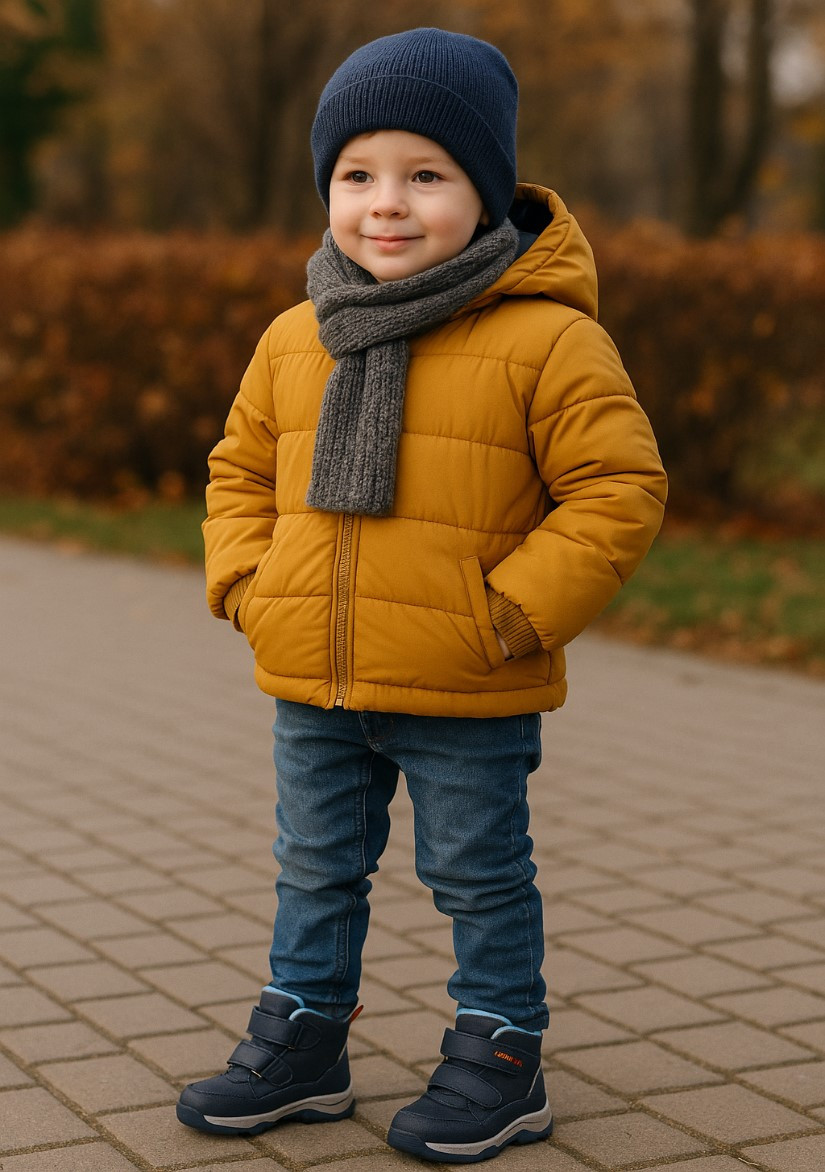 Chłopięce buty ocieplone miękkim materiałem wewnątrz, który ogrzewa stopę. Zapinane za pomocą dwóch praktycznych rzepów. Zapiętek stabilizuje stopę i utrzymuje ją w prawidłowej pozycji.