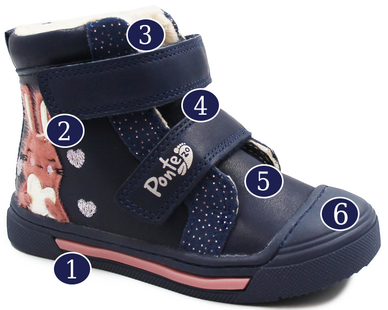 ❄️ Cholewka wykonana jest z miękkiej skóry hydrofobowej, co gwarantuje elastyczność, przewiewność i dopasowuje się do kształtu stopy dziecka.