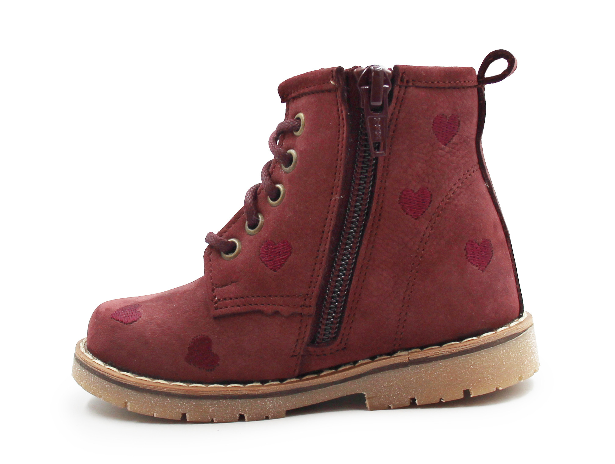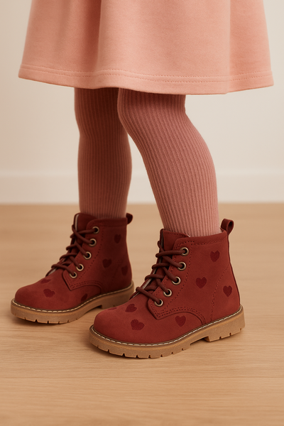 6. Skóra naturalna wysokiej jakości - miękka, trwała i bezpieczna dla skóry dziecka. Bordowy kolor i haftowane serduszka nadają butom wyjątkowy, dziewczęcy charakter.