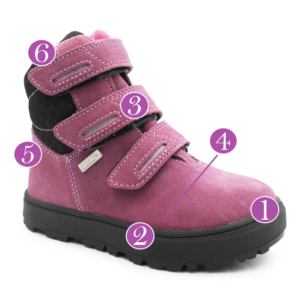 Ocieplane buty dziewczęce, zapinane za pomocą trzech rzepów. Wkładka jest wyjmowana, a wnętrze obuwia otulone jest wełną, która chroni stopy przed zimnem. Wyposażone w właściwości wodoodporne, które mają na celu utrzymać suche stopy dziecka.