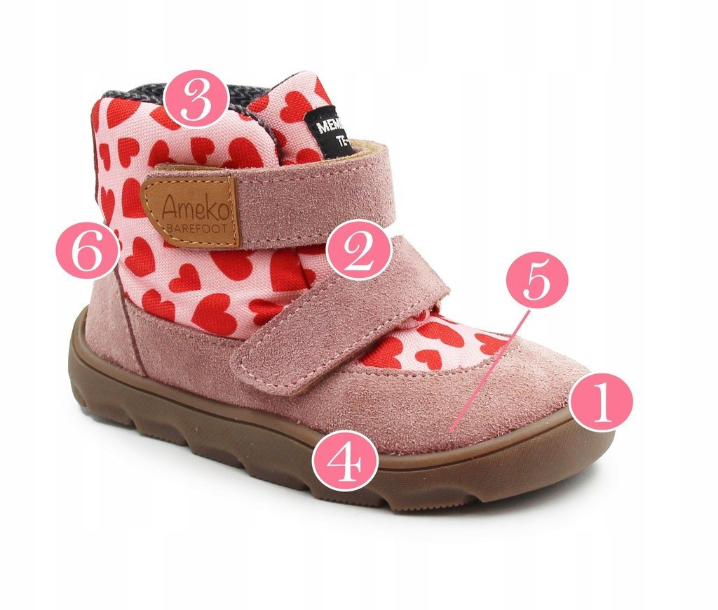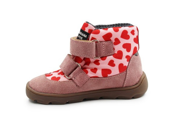 Buty Dla Dziewczynki Barefoot z Membraną Ocieplane w Serduszka Ameko Elon Hearts