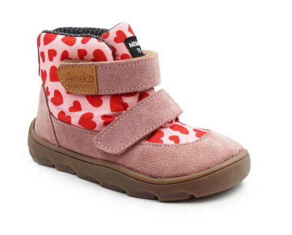 Różowe Buty Dla Dziewczynki Ocieplane za Kostkę Barefoot Ameko Elon Hearts