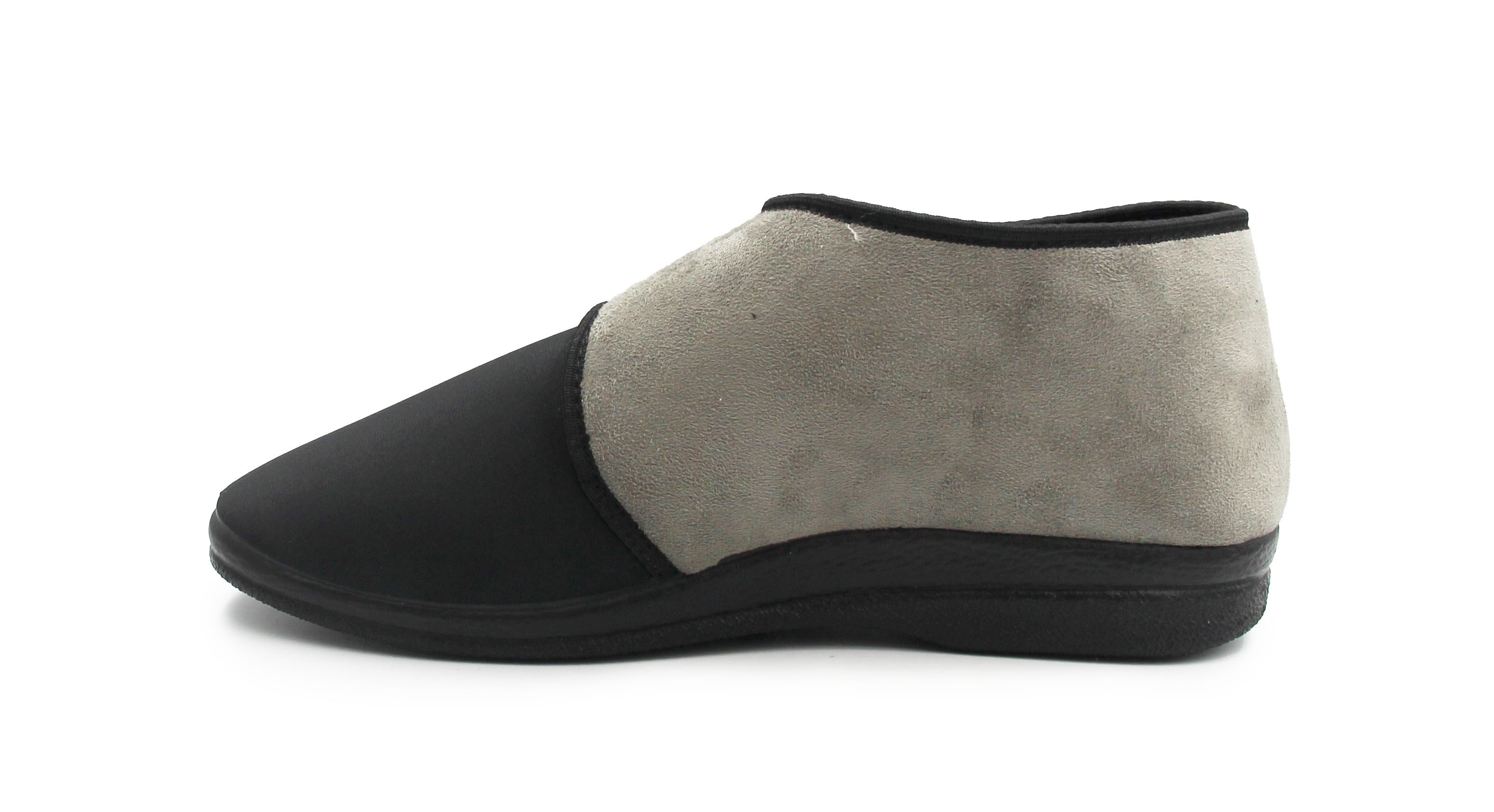 Męskie półbuty, które sprawdzą się jako buty domowe oraz obuwie wyjściowe . Element ze stretchu charakteryzuje się wysoką rozciągliwością, dzięki czemu buty dopasują się do szrokości stopy. Wyposażone w rzep, który umożliwia dokładne dopasowanie do szerokości stopy. Przewiewny materiał odpowiada za wentylację.