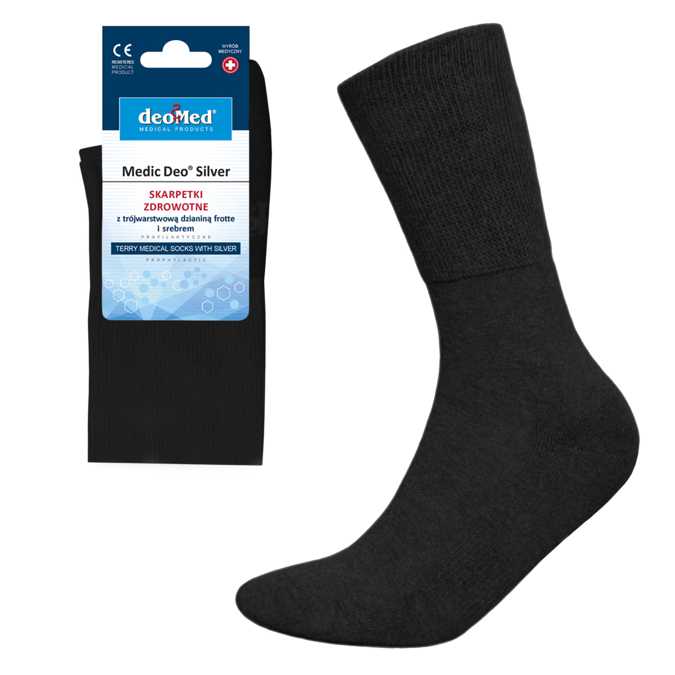 Skarpety Medic Deo Silver JJW - zdrowotne z dzianiny frotte z dodatkiem jonów srebra.