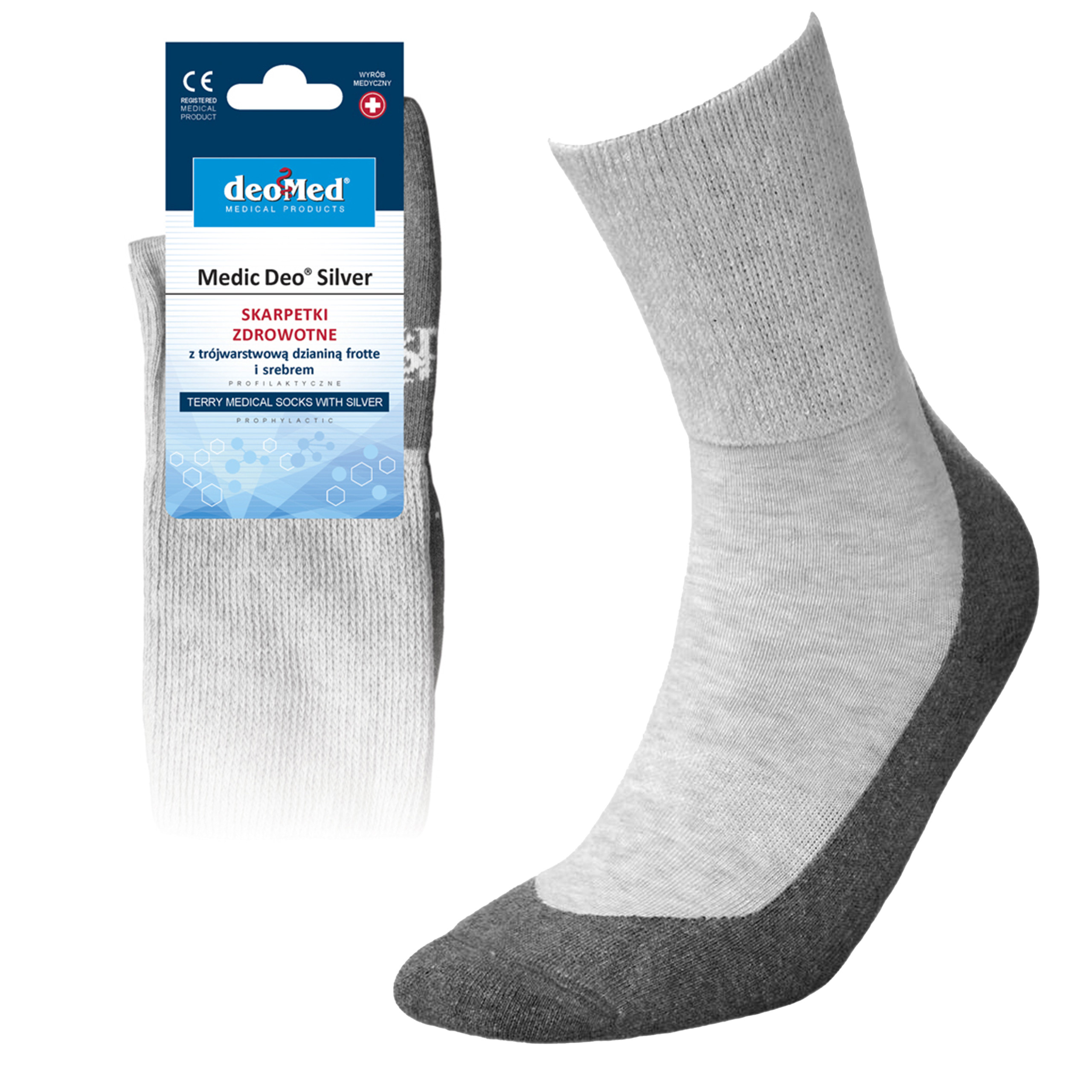 Skarpety Medic Deo Silver JJW - zdrowotne z dzianiny frotte z dodatkiem jonów srebra.