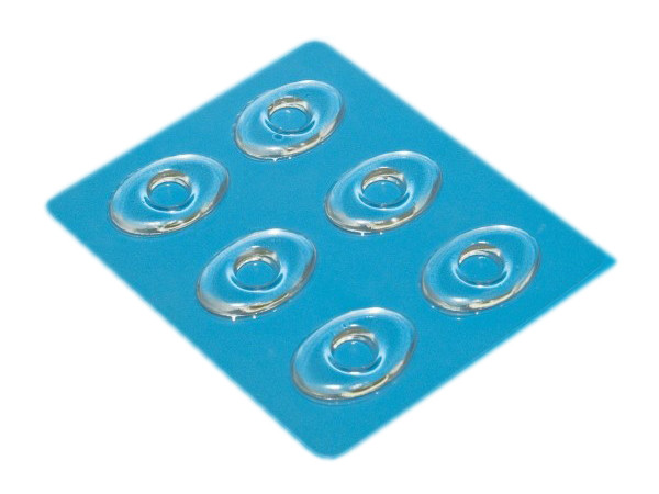 Samoprzylepne, przezroczyste krążki wykonane z miękkiego żelu polimerowego, który jest hypoalergiczny. Ich kształt i elastyczność pozwalają na precyzyjne umieszczenie w miejscach wymagających amortyzacji i odciążenia. Krążki żelowe chronią wrażliwe części stóp przed otarciem i odciskami powstającymi przy noszeniu niedopasowanego obuwia.
