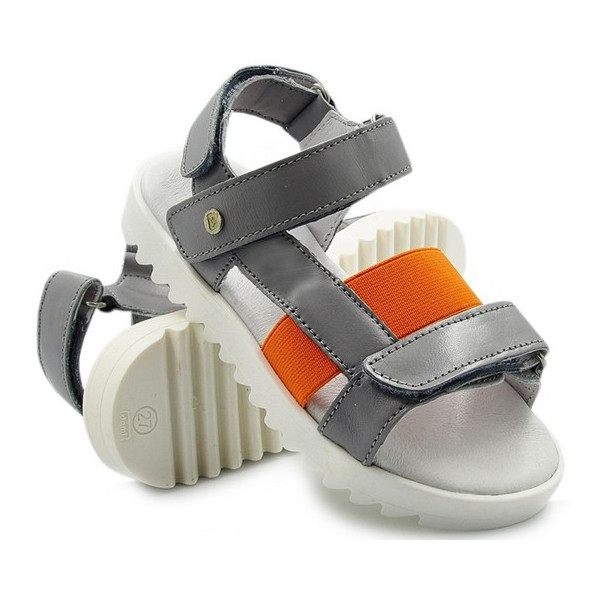 ✔️ Sportowe dziewczęce sandałki w kolorze szarym z dodatkiem pomarańczowego.