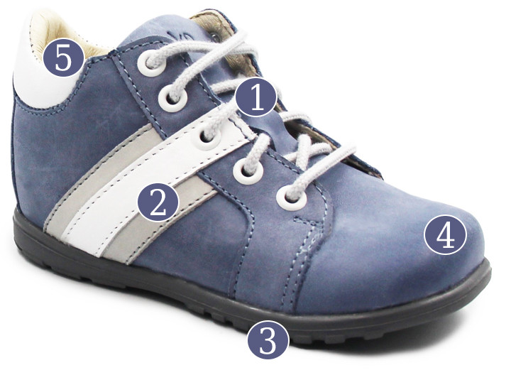 Wykonana jest z elastycznego materiału, który ułatwia stawianie pierwszych kroków. Punkty są ułożone w kształt trójkąta (niebieskie strefy) te miejsca są znacznie bardziej miękkie, wpływają na prawidłowe ustawienie stopy.