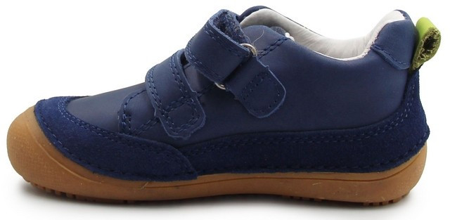 Wiosenne buty dla chłopca w niebieskiej kolorystce. Wykonane z miękkiej skóry nubukowej. Wyposażone w podeszwę Barefoot, którą cechuje wysoka elastyczność oraz uczucie chodzenia "na boso", zapewnia stopie maksymalne czucie powierzchni. Wkładka o zerowym spadku, co oznacza że nie posiada różnicy między palcami, a piętą.