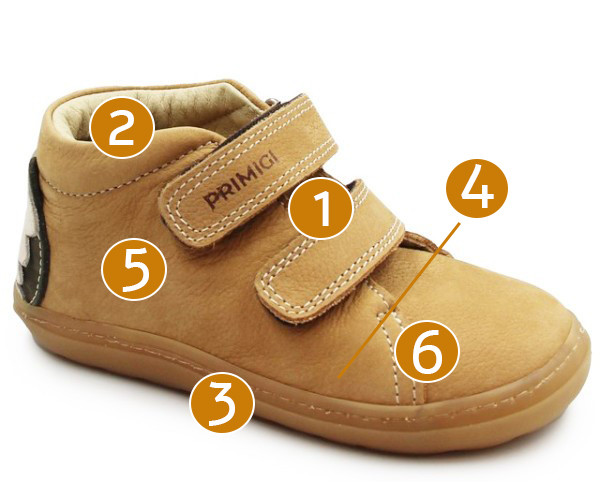 Buciki dziecięce z ozdobnym elementem w okolicach zapiętka. Zapinane za pomocą praktycznych rzepów. Posiadają elastyczną podeszwę, która nie ogranicza ruchomości stopy podczas chodzenia. Wkładka zapewnia odpowiednią wentylację stopy.