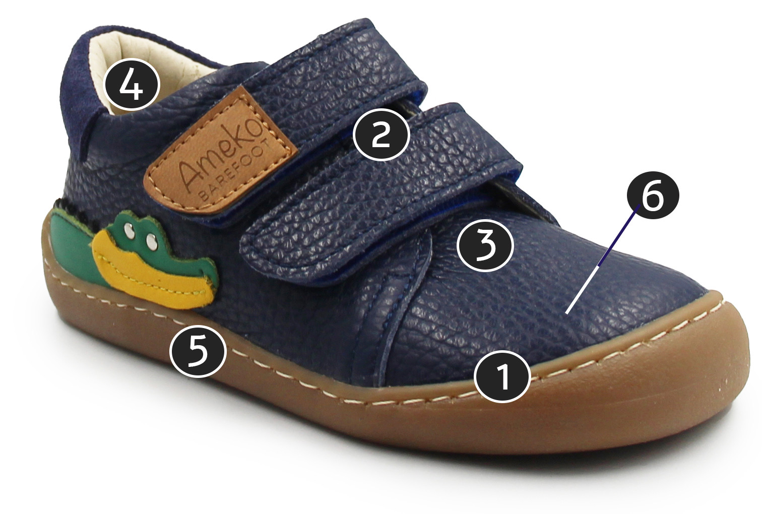 Chłopięce półbuty zapinane za pomocą dwóch rzepów. Wyposażone w ozdobny element po boku. Podeszwa Barefoot, jaka została zastosowana, zapewnia palcom swobodne poruszanie