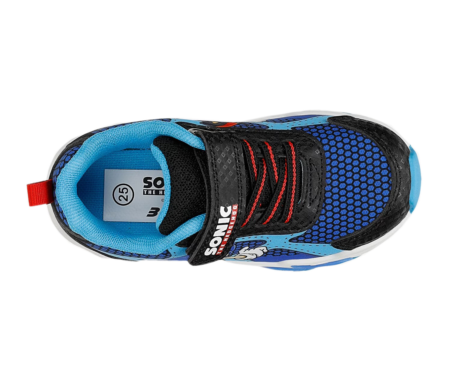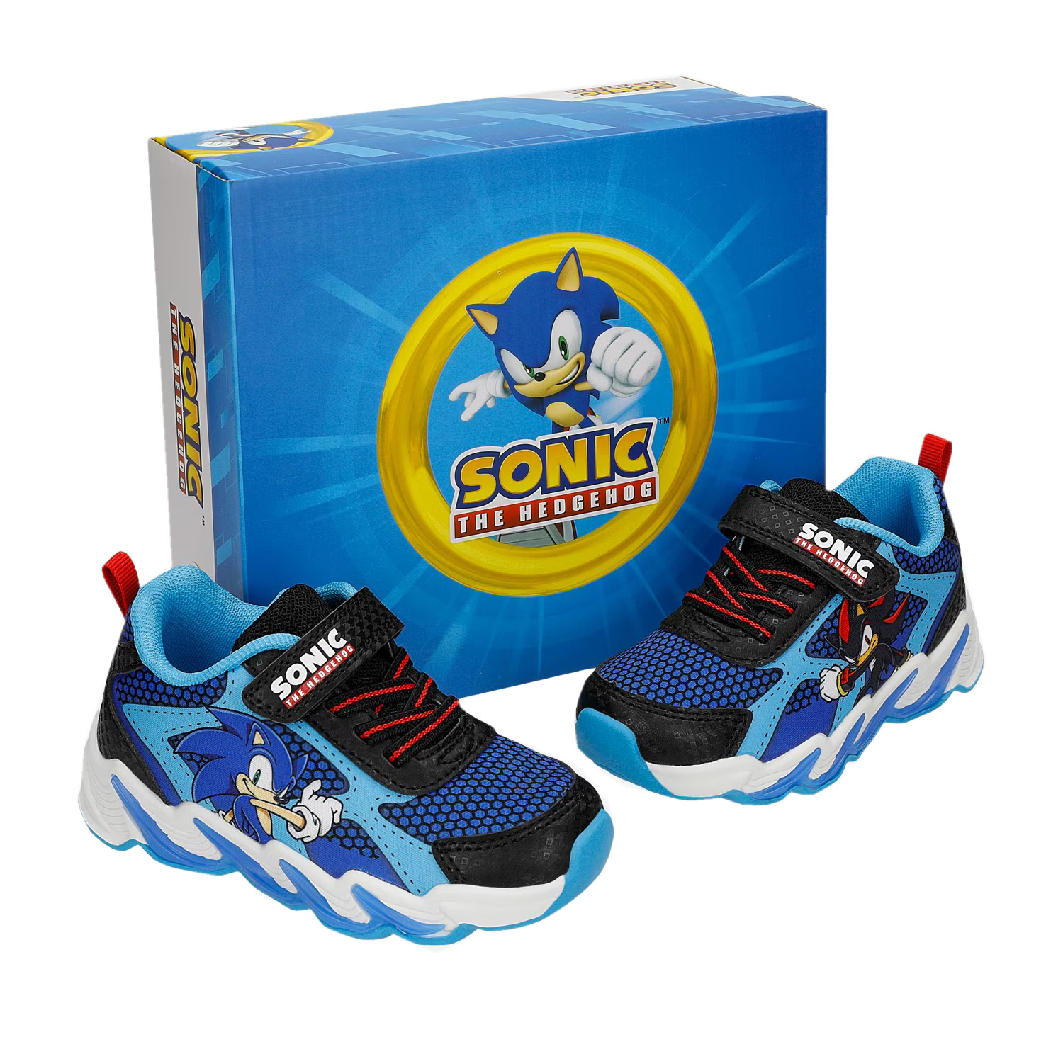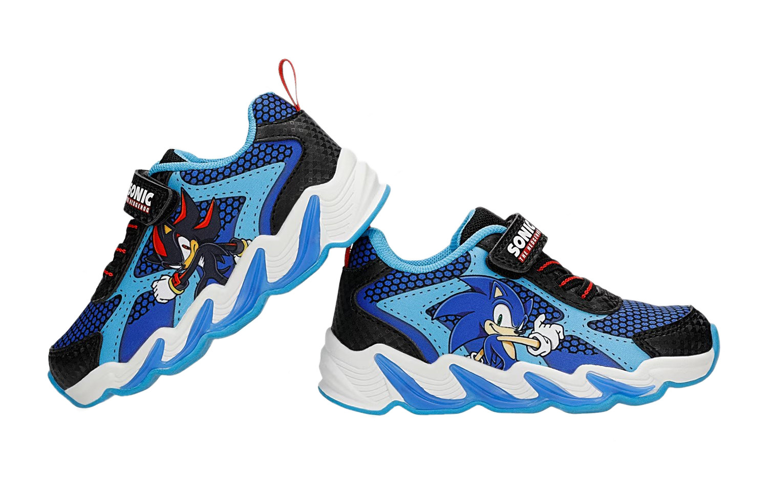 Wykonane z miękkich materiałów. W zewnętrznej stronie buta znajduje się bohater bajki Sonic. Buty wyróżniają się aplikacją oraz wbudowanymi diodami LED, które świecą przy każdym kroku w podeszwie.