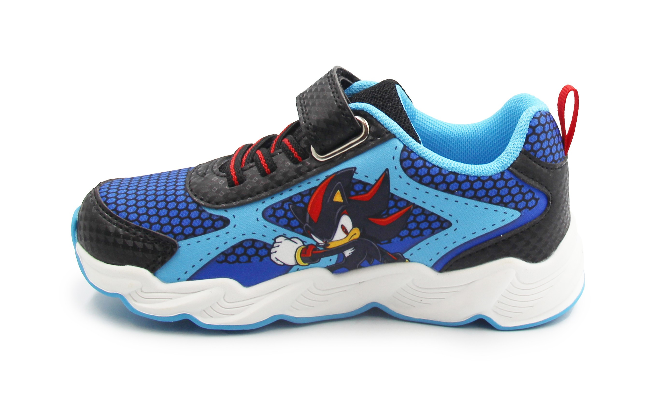 Wykonane z miękkich materiałów. W zewnętrznej stronie buta znajduje się bohater bajki Sonic. Buty wyróżniają się aplikacją oraz wbudowanymi diodami LED, które świecą przy każdym kroku w podeszwie.